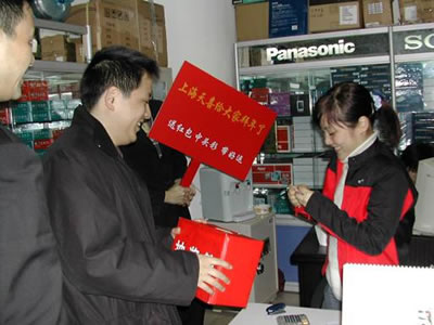 2005年2月17日(農(nóng)歷正月初九)開始,商科上海分公司從太平洋、百腦匯到賽博、頤高電腦城給每一個商科的客戶拜年,邀請每一家商家代表抽取新年紅包一個,并為每一位在場的商家員工贈送感謝獎紅包一個,對他們一年以來對商科的支持表示感謝,并祝新春快樂,生意開門紅,新年行大運!