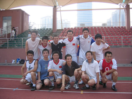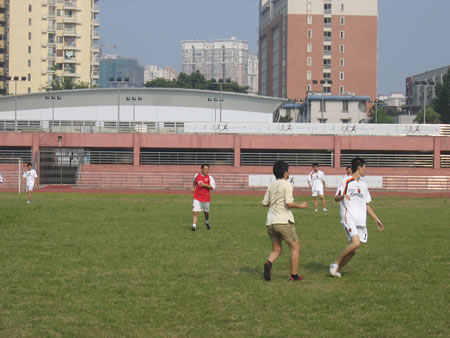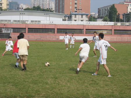 在培訓(xùn)結(jié)束之后,在華師大的綠茵場上,在震天的吶喊聲、助威聲中,商科集團(tuán)和塔內(nèi)PC聯(lián)盟的足球賽進(jìn)行的熱火朝天,年青的小伙子們用沸騰的熱血和揮灑的汗水在足球場上展現(xiàn)著自己最帥的一面。
