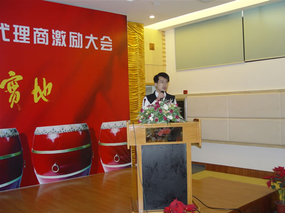 孫總致歡迎詞,并對本次會議主題“一起進步,共同成長”作出非常形象的詮釋,對市場及銷售方面,作了總結和展望。