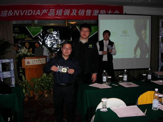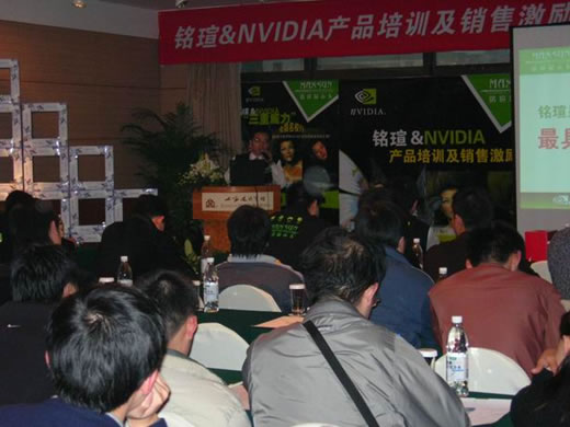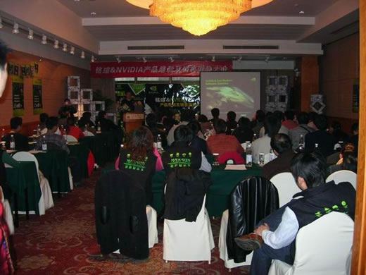 這次會(huì)議在上海建國(guó)賓館舉行,會(huì)場(chǎng)經(jīng)過了工作人員精心準(zhǔn)備,銘瑄、NVIDIA及眾多經(jīng)銷商共聚一堂,整個(gè)會(huì)場(chǎng)座無虛席,氣氛相當(dāng)熱烈。