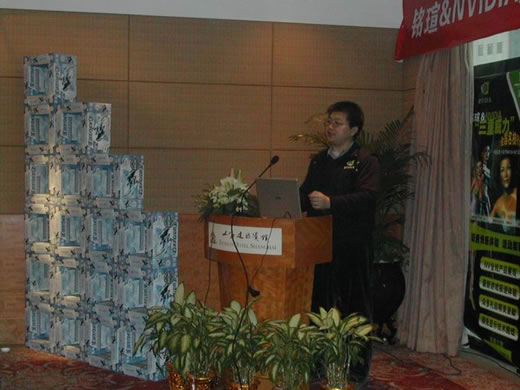 隨著銘瑄&NVIDIA全國(guó)經(jīng)銷商會(huì)的召開,大家對(duì)NVIDIA中國(guó)區(qū)渠道經(jīng)理侯宇濤先生已經(jīng)非常熟悉,侯先生就NVIDIA的產(chǎn)品情況給大家做了詳細(xì)的培訓(xùn),在前幾次培訓(xùn)三重威力的基礎(chǔ)上,這次還重點(diǎn)強(qiáng)調(diào)了2006年NVIDIA即將推出的G70系列顯卡及先進(jìn)的Purevideo視頻技術(shù)。