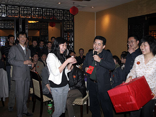 公司領(lǐng)導(dǎo)現(xiàn)場(chǎng)增加了許多現(xiàn)金大獎(jiǎng),將會(huì)場(chǎng)氣氛推到高潮