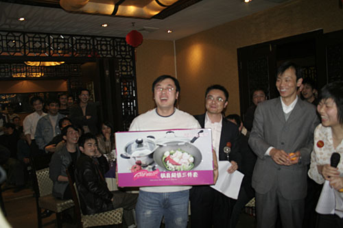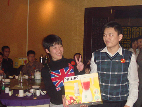 晚宴結(jié)束后,大會(huì)的最令人興奮的抽獎(jiǎng)活動(dòng)便拉開了帷幕。公司為本次大會(huì)準(zhǔn)備包括現(xiàn)金大獎(jiǎng)、名牌手表、高檔化妝品,小家電、數(shù)碼MP3、U盤在內(nèi)的豐富獎(jiǎng)品。