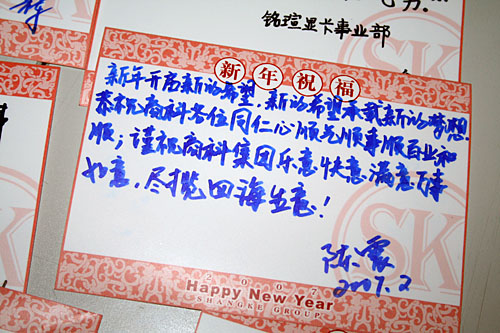 商科同仁們帶著高興與快樂的心情,紛紛在賀卡上寫下了自己對(duì)公司的美好祝愿后,帶著自己的獎(jiǎng)品及美好的心情,以及對(duì)2007年熱切的期待,秩序離開會(huì)場(chǎng)。我們也祝福商科公司在新的一年里更上層樓,為社會(huì)的經(jīng)濟(jì)發(fā)展做出更大的貢獻(xiàn)與發(fā)展。