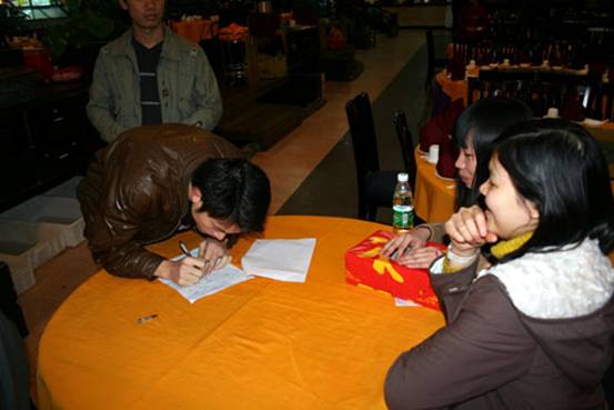 先到場的工作人員早已經(jīng)為大家準(zhǔn)備好了燈謎競猜活動。在晚會開始之前,先到的同事和領(lǐng)導(dǎo)們興致勃勃的加入燈謎活動之中。