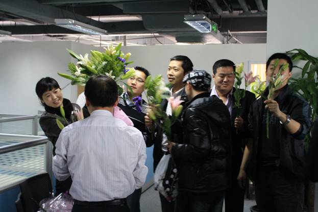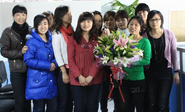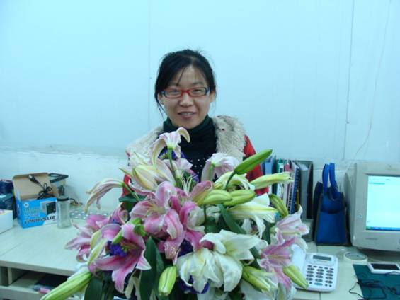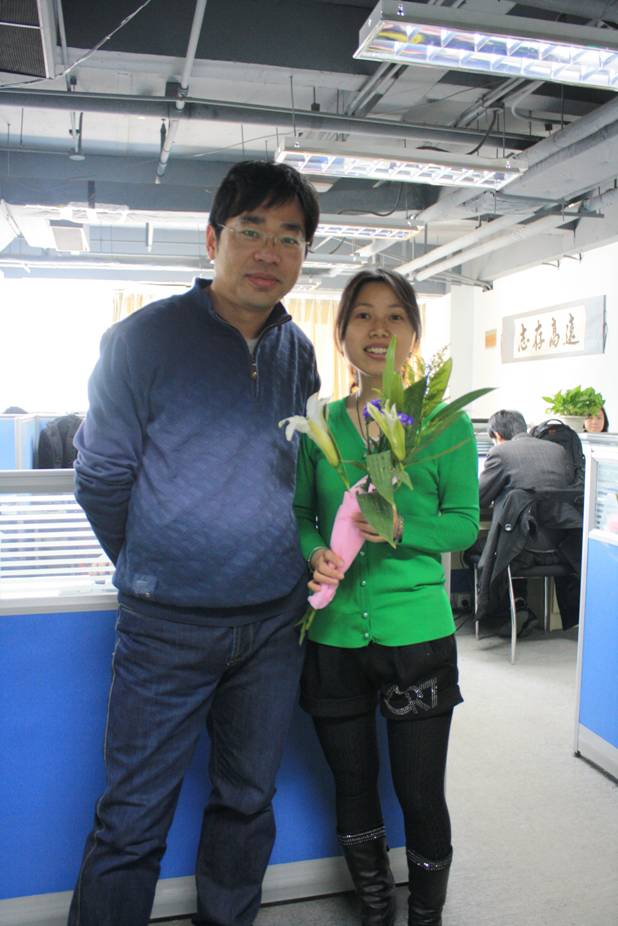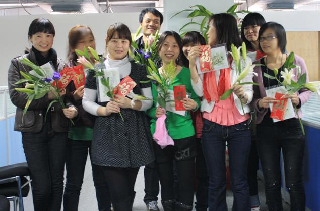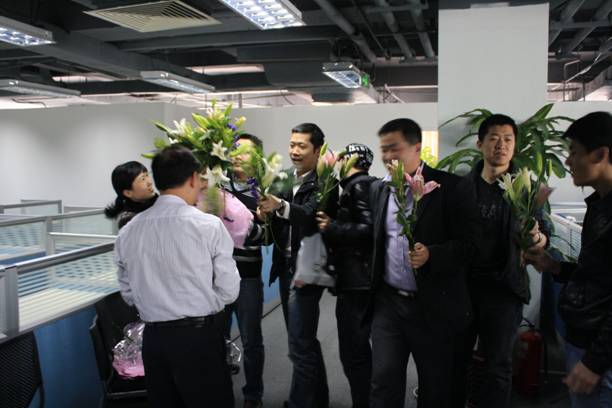 在今天,男同事們向平時與他們工作密切銜接的女同事獻花,向她們表示深深的謝意。感謝她們平時的配合和支持!