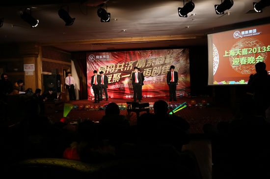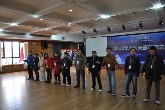 2013年1月13日上海分公司在坤明湖度假村召開了一場別開生面的年度總結(jié)會。會議包括上午的“2012年度總結(jié)會議”、下午的“室內(nèi)激情拓展活動”還有晚上的“2013年天喜春節(jié)聯(lián)歡晚會”。