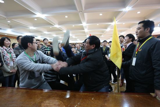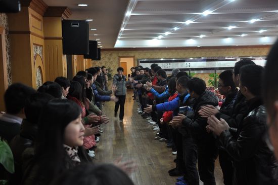 會議最后一項是優(yōu)秀員工頒獎儀式,所有獲獎人員都要跑過“榮譽大道”