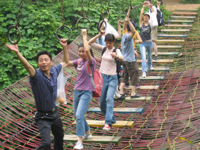 話說當(dāng)他們踏進(jìn)“笑翻天樂園”的時(shí)候,突然天地變色(下起了毛毛細(xì)雨),山崩地裂(人為的!),把商科等人去“東天”取“驚”的路給隔斷了。在沒有辦法之余,他們只有克服路上的妖魔鬼怪(自己想出來的)、重重苦難,齊心協(xié)力的過了第一關(guān)。