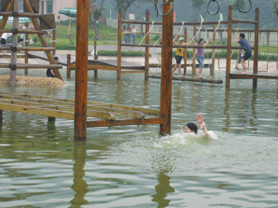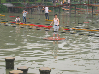 有個(gè)“仙女”居然雙腳“離水”三尺,踩著繩梯悠閑自得的走來走去。