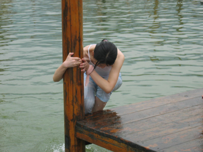 就在這時(shí)候,突然,一翻地動(dòng)山頭搖之后,有人在大喊“救命!”,眾人仔細(xì)一看,乖乖不得了,原來是有位不會(huì)游泳的仙女掉進(jìn)了水里。