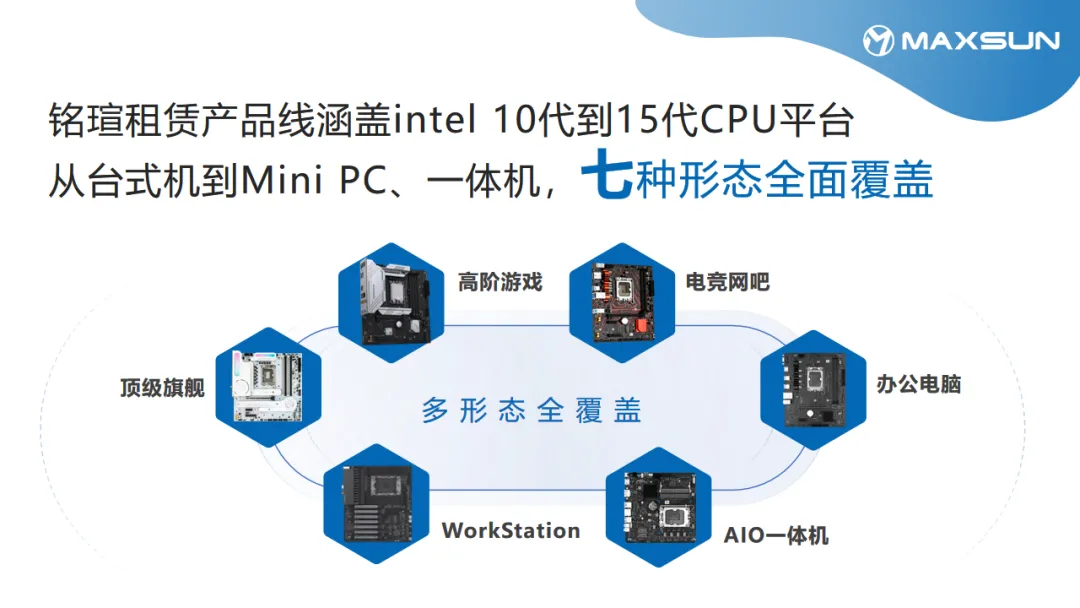 從產品上來說,銘瑄主板為英特爾APM提供了可靠有力的支持。銘瑄租賃產品線涵蓋intel 10代到15代CPU平臺,使用場景從游戲、電競酒店/網咖、辦公、工作站、遠程部署等,從臺式機到Mini PC、一體機,七種形態全面覆蓋,為客戶提供了全天候全場景的無感穩定租賃服務,提供了靈活、高效和安全的數據管理和處理解決方案,讓企業可以專注于核心業務,提升運營效率,快速響應市場變化和用戶需求。