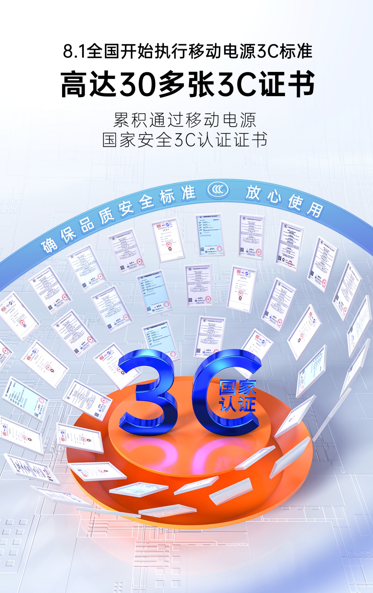3C認(rèn)證是為保護(hù)消費(fèi)者人身安全和國(guó)家安全,加強(qiáng)產(chǎn)品質(zhì)量管理而實(shí)施的一種產(chǎn)品合格評(píng)定制度。自2023年8月1日起,移動(dòng)電源(充電寶)被正式納入3C認(rèn)證目錄,自2024年8月1日起,未獲得3C認(rèn)證的移動(dòng)電源產(chǎn)品將不得在中國(guó)市場(chǎng)銷售。