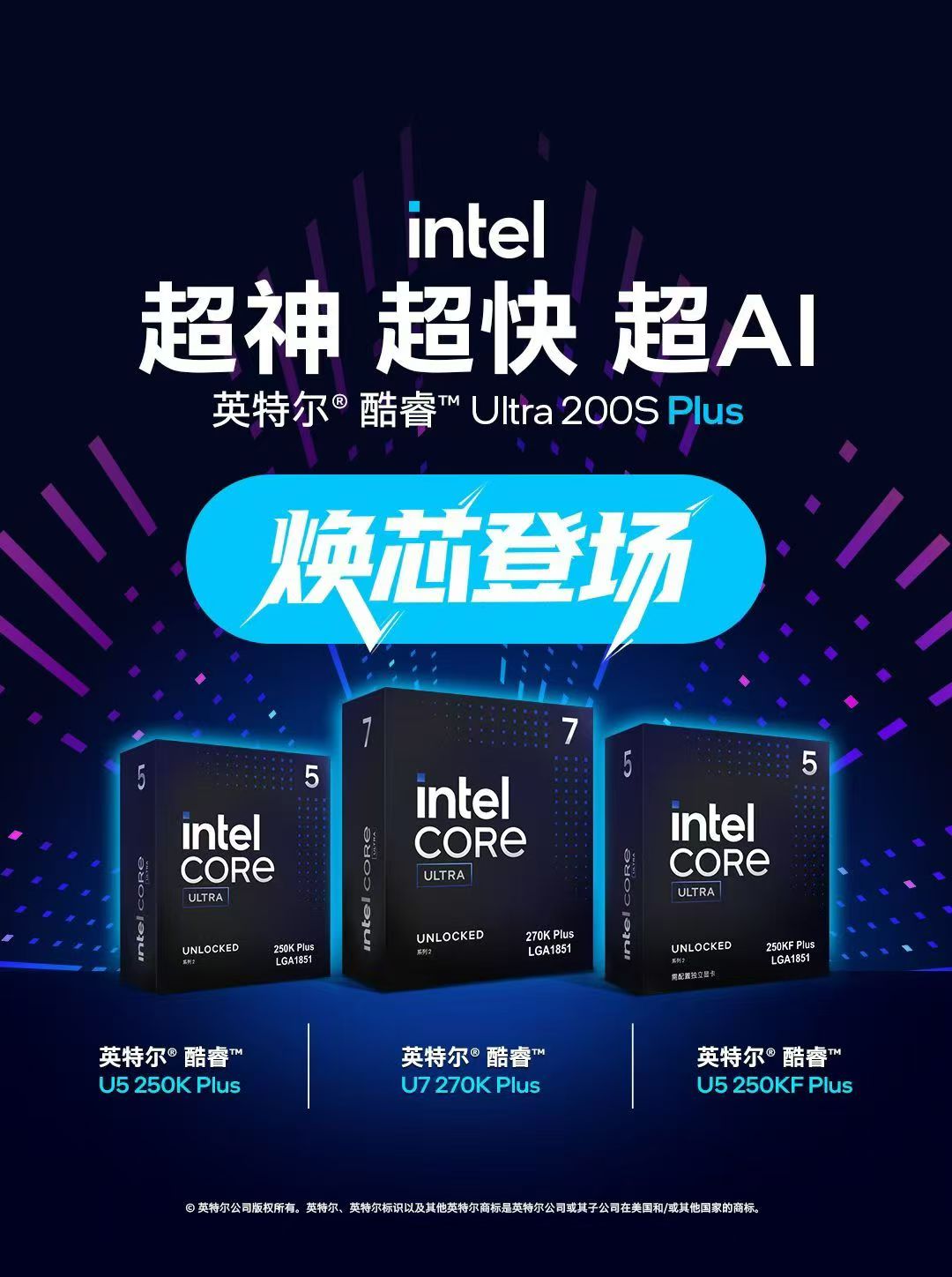 3 月 26 日,英特爾 ® 酷睿™Ultra 200S Plus 系列處理器重磅開售,酷睿 Ultra 7 270K Plus 與酷睿 Ultra 5 250K Plus 兩大旗艦型號攜架構與規格雙重升級而來,為臺式機性能體驗帶來跨越式提升,也為硬件玩家們帶來了全新的性能選擇。